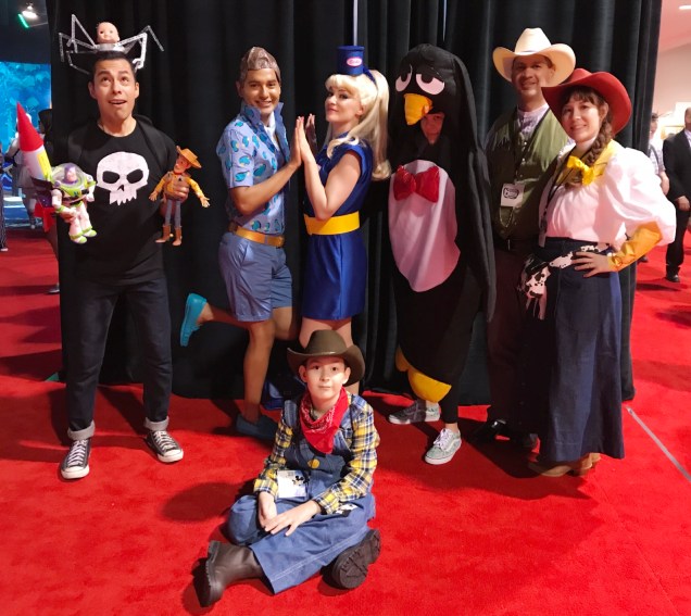 On Friday, we wore our Toy Story “Hawaiian Vacation” costumes that I’d made for Mickey’s Not-So-Scary Halloween Party at Walt Disney World, back in 2014 – with an added accessory for me, a screwdriver purse. As favorites of ours, they were definitely worth making another appearance, especially in a place where they would be recognized and appreciated. Imagine how excited we were when, having not even been on the show floor for 15 minutes on that first day, we ran into Stinky Pete!