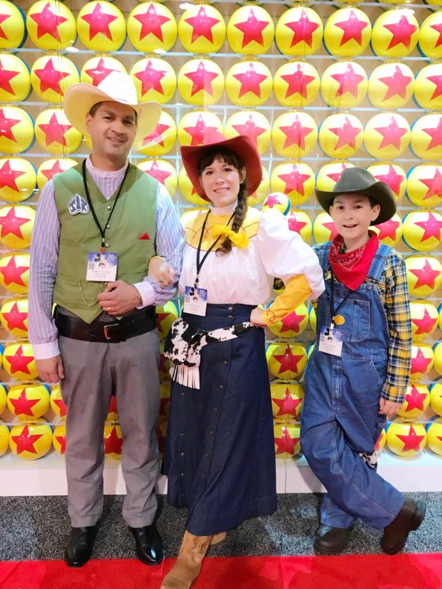 For Saturday, I created brand new costumes for us, specifically for the Expo. Being a bit of a history nerd, I decided to do something original, and reimagine the Toy Story characters as if they were in the Old West, circa 1890s. I sewed the costumes myself, using historically-accurate patterns – except for my son, who decided at the last minute he wanted to dress up with us that day as well, so I had to throw something together for him, fast! And to anyone who would question that Jessie would wear a skirt, it’s a split riding skirt, with a removable panel that allowed early cowgirls to ride their horses astride without deviating too far from accepted fashion. Trust me, I did my research.