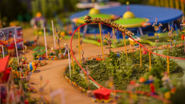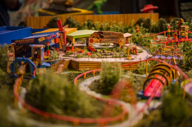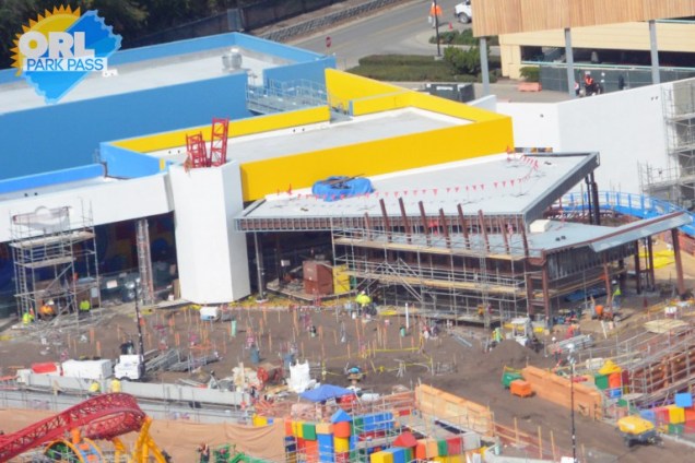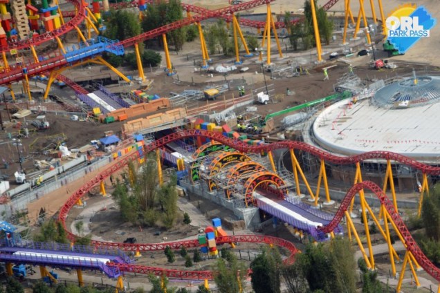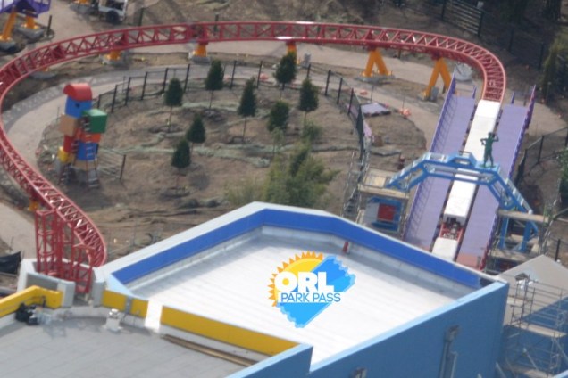 The land’s family-friendly coaster, which features two launches, is coming along nicely. Figures of Jessie, Rex, Mr. Spell, and a Green Army Man have been added, as well as some landscaping and decorative props.