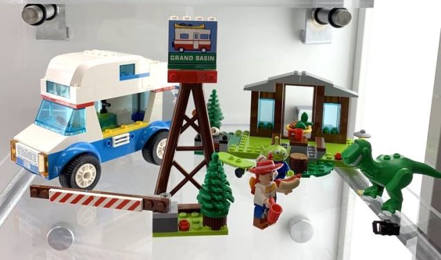 Lego sets will be available for purchase as of April 22. There are two more that we haven’t seen yet: one themed to a playground, and another with Duke Caboom. I’m guessing that these are more spoilery; and while they may have been on display at Toy Fair, photos weren’t allowed.