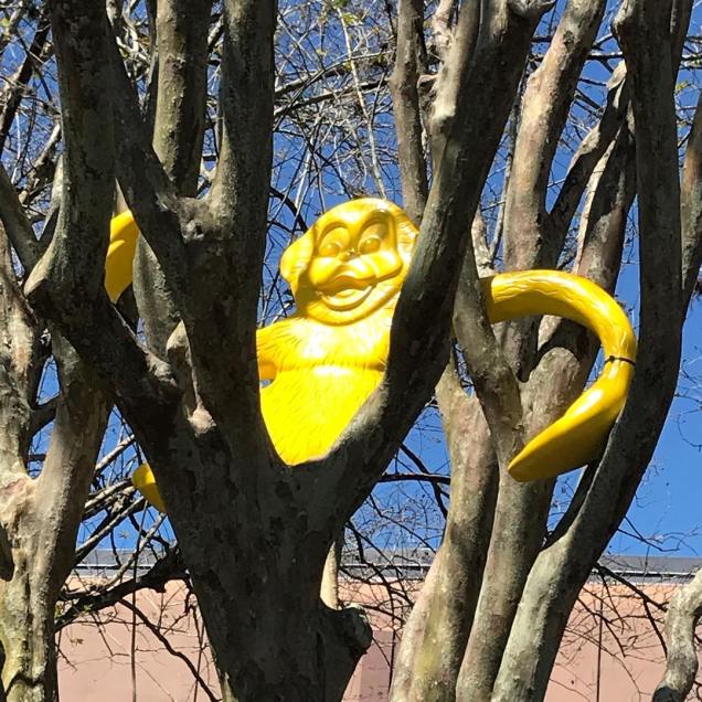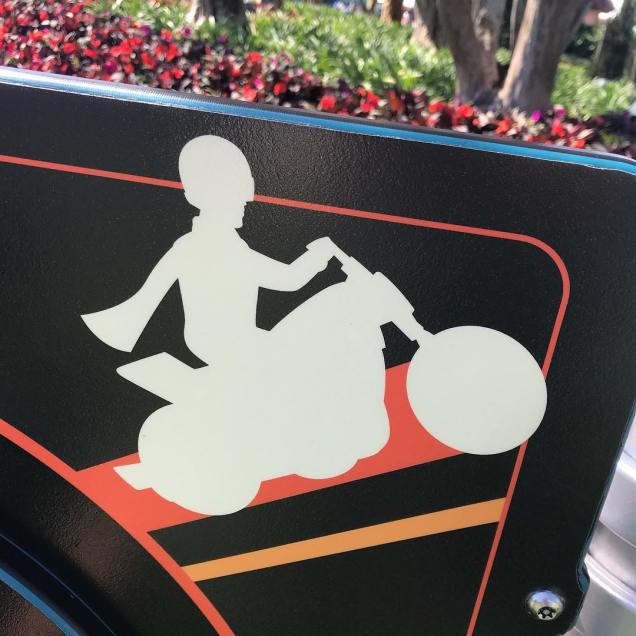 The entrance sign reads Training Grounds. Hmm, is this a hint at some aspect of the movie? When you enter, there are a bunch of block-shaped planters as decorations, as well as monkeys that used to be part of the old Pixar Place area of Hollywood Studios. (There are also some extra parts from the fences at Toy Story Land strewn about, but I haven’t included a photo of them because they’re not all that exciting.)