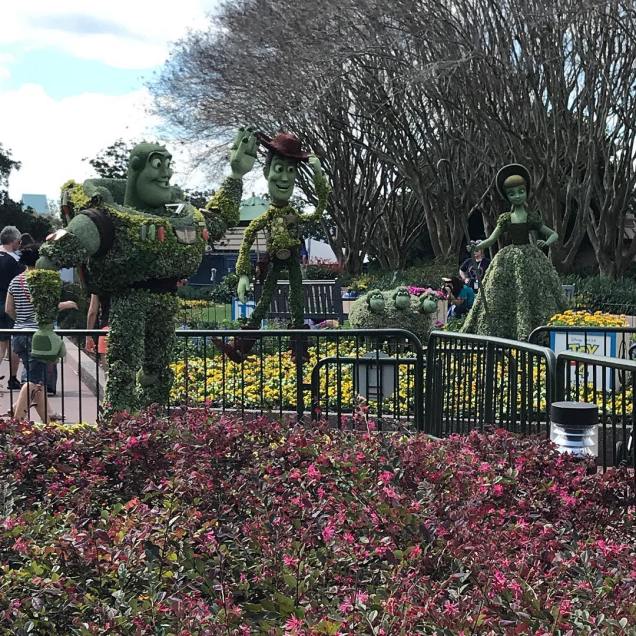 Besides the fun character images all across the playground, they also play music from the Toy Story films in the background. And it’s not just instrumental, either – I loved hearing some of the Woody’s Roundup songs by Riders in the Sky! While we were there, the first few days of the Flower and Garden Festival caused some crazy crowds, so this little area quickly became my happy place in the park. I hope that, even if the topiaries get taken down after the festival is over, the playground itself sticks around for a while!
