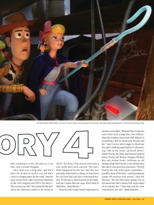 The current issue of Entertainment Weekly revealed a new little bit of information as well, along with a new screen shot. Although the image is only a still from a scene shown in the most recent TV spot clips, it’s nice to have in a higher-res version. And in the article that included the still, both Annie Potts, the voice of Bo Peep, and Josh Cooley, the film’s director, talked briefly about the film.