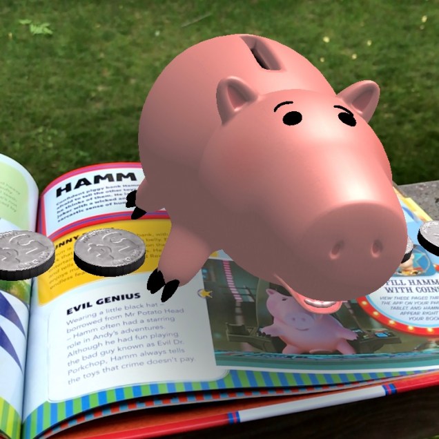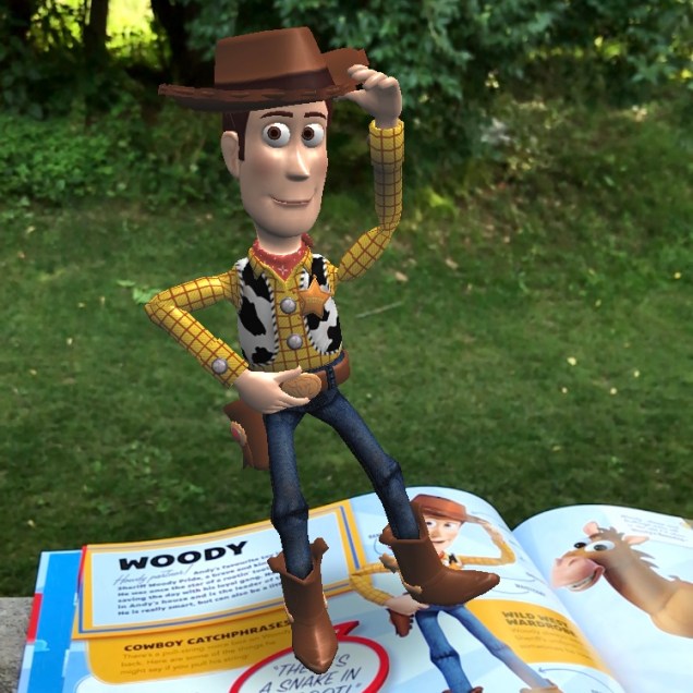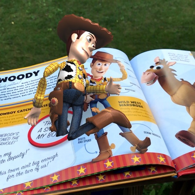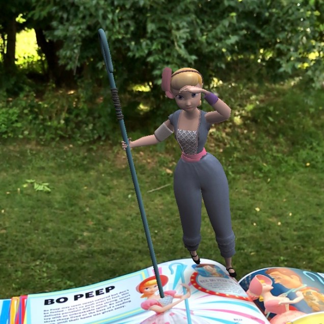You can enjoy this book just as it is, but it’s the augmented reality aspect of it that makes it so great! Once you’ve installed the free Toy Story app – available from the App Store or Google Play – you’re good to go. Now you can bring the gang to life in 3D, right from the pages of the book, just by scanning the images inside. I took mine outside on this beautiful summer afternoon to get some pics of the characters in action.