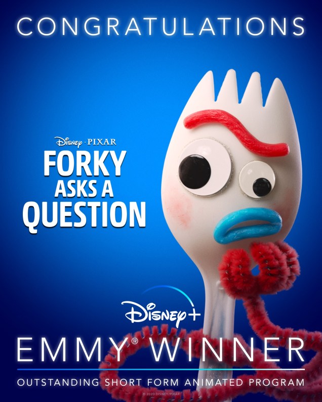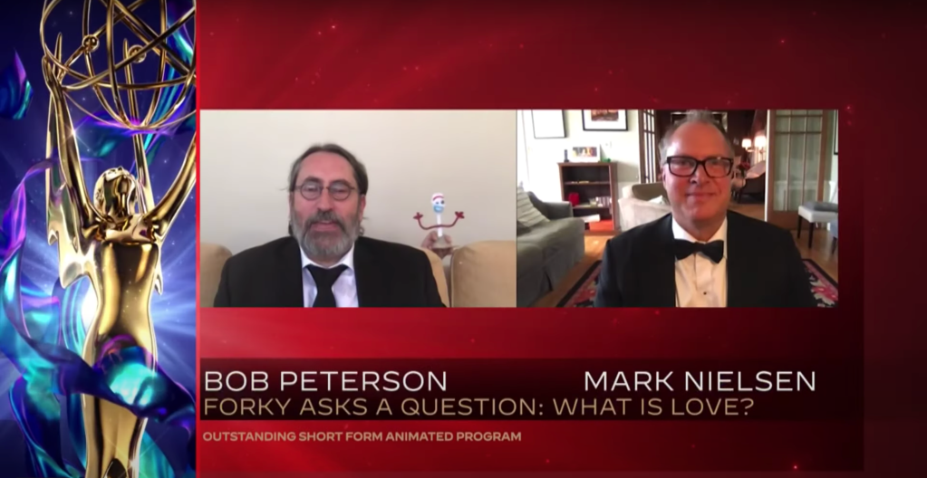 The Emmys held their 2020 Creative Arts awards on Thursday, September 17, ahead of the main broadcast on Sunday, September 20. (I guess that means I don’t have to watch the Emmys this Sunday after all – but I probably will anyway.) Forky’s category begins at the 19:18 mark: