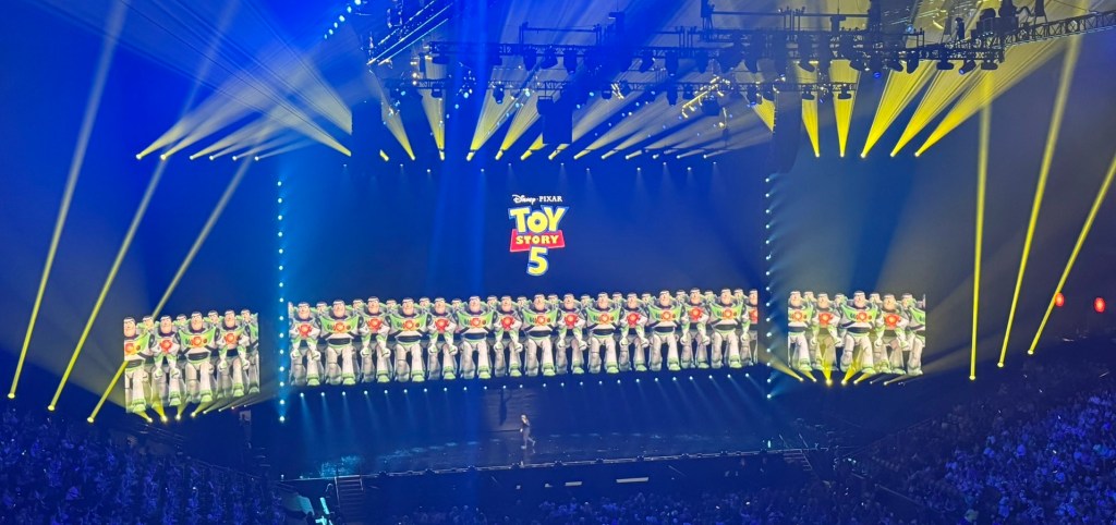 Although I have been to D23 in the past, I’m not there this year, so I was following along with all the live reports on X (Twitter) last night, figuring that Toy Story 5 was bound to be mentioned at the huge Entertainment Showcase. There had been a panel earlier in the day, celebrating 30 years of Toy Story, that focused on the making of the first film; however when it concluded without any mention of the new movie, the night’s big presentation seemed like the best bet for news.